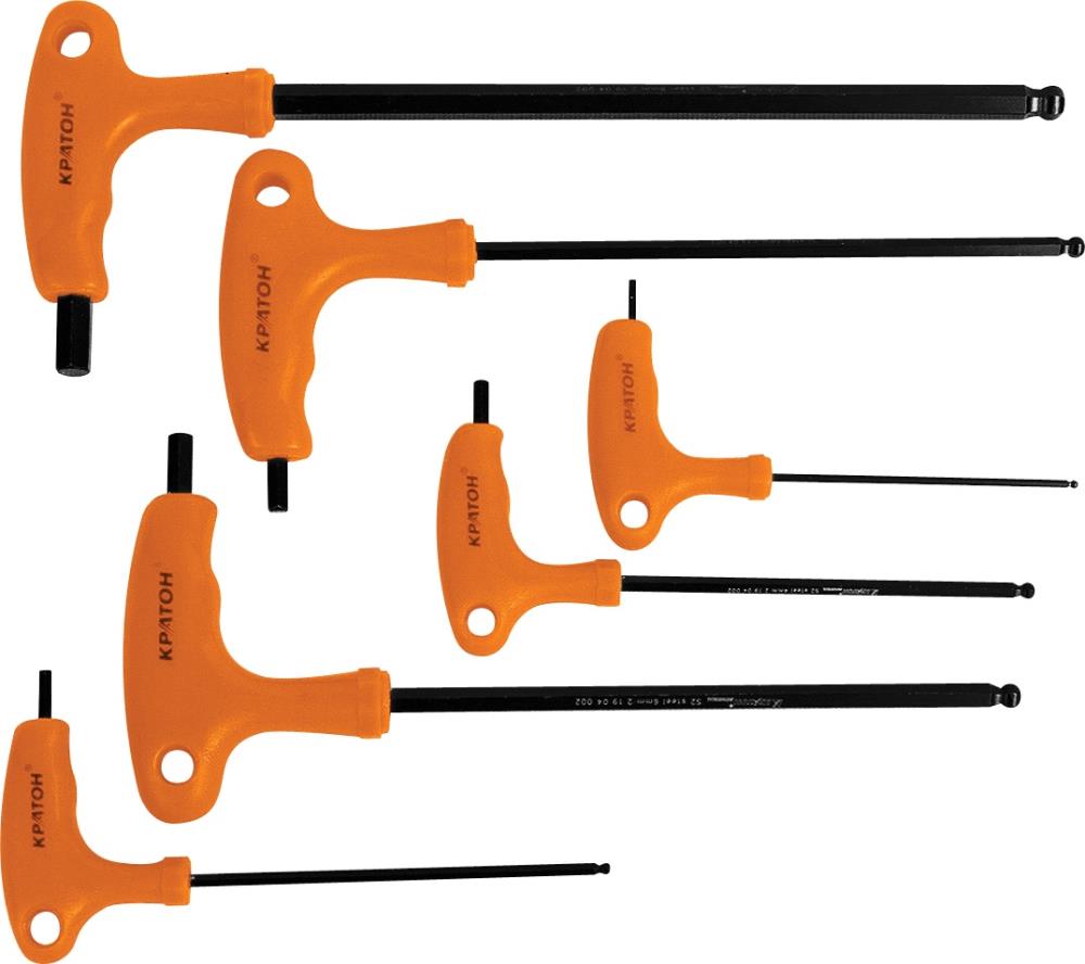 1. Набор ключей шестигранных с шаром Кратон Т-образных — 6 шт в комплекте.
