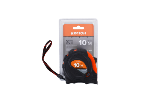 Рулетка фирмы КРАТОН MTM-10 применяется при проведении замеров в быту и на производстве. Она проста в использовании. Деления с шагом в 1 мм нанесены четко, не истираются. Для предотвращения сворачивания ленты в процессе измерений в конструкции предусматривается специальный фиксатор. Зацеп измерительной ленты — магнитный, он позволяет закрепить конец ленты к металлической поверхности. Ремешок на корпусе рулетки позволяет при работе носить рулетку на запястье, оставляя рабочую ладонь свободной. Эргономичный обрезиненный корпус сохраняет от деформации и механического повреждения инструмент при падении.