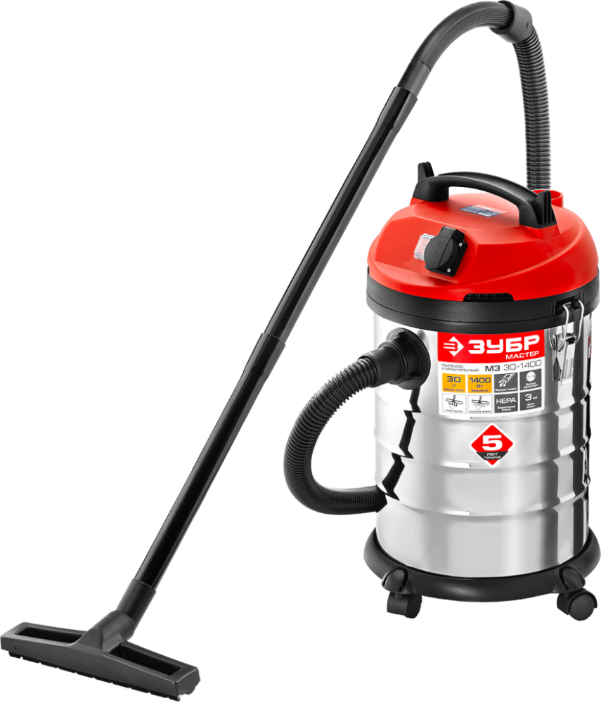 Строительный пылесос ЗУБР предназначен для уборки помещений, а также для принудительного удаления продуктов пиления, строгания, фрезерования и т.п. из рабочей зоны электроинструмента. Он незаменим для поддержания чистоты в гараже, мастерской, удаления мусора во время ремонта в квартире или на даче. Бак из нержавеющей стали объемом 30 л очень долговечен. а синхронное включение с инструментом, подключенным через розетку пылесоса позволит сохранить чистоту на рабочем месте. Пылесос предназначен для сухой и влажной уборки помещений, а также для использования (с синхронным включением) с электроинструментом при принудительном удалении продуктов пиления, строгания, фрезерования и т.п.